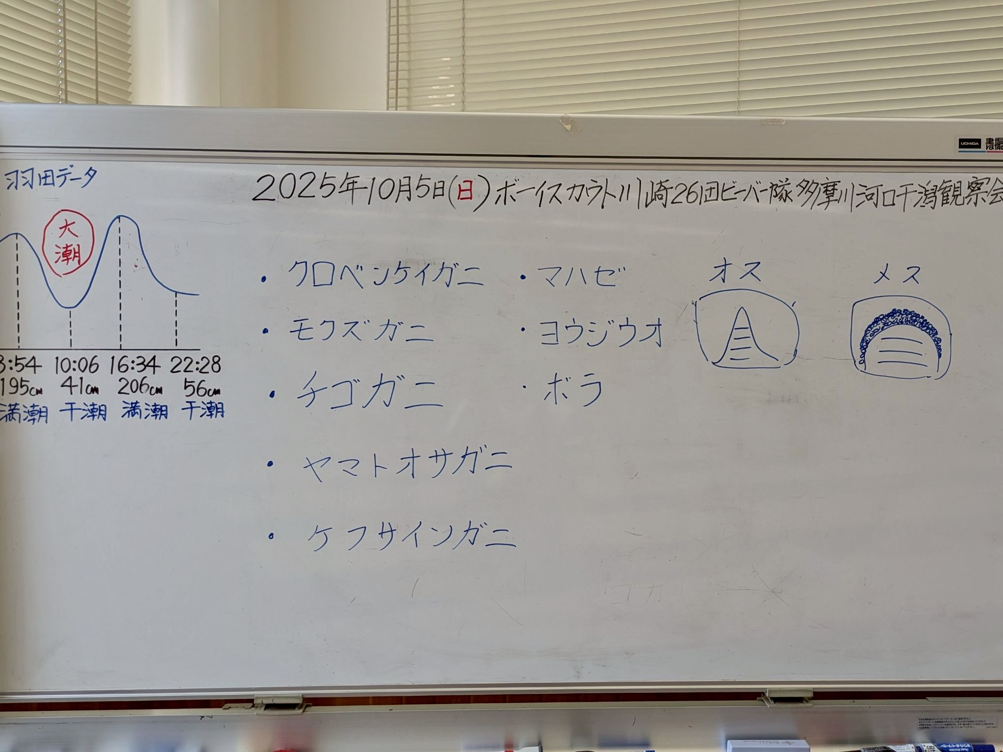 10月5日に、ビーバー隊集会として干潟の生き物観察を行いました。大師河原干潟館を拠点に、多摩川河口の干潟にどんな生き物がいるかを探してみます。
